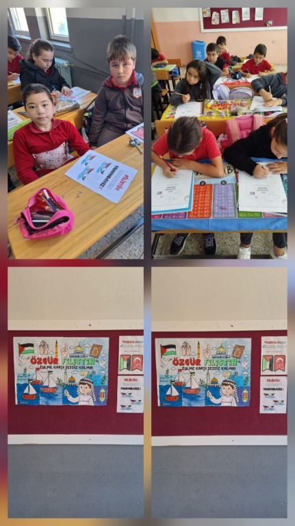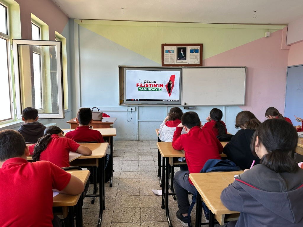 Sınıf içi etkinliklerde öğrenciler Filistin’de yaşanan olayları daha yakından tanıma fırsatı buldu. Afiş ve pankart çalışmaları, şiir dinletileri, tematik sunumlar, video gösterimleri ve ortak dua etkinlikleriyle farkındalık oluşturulmaya çalışıldı. Ayrıca öğrenciler, Filistin’deki çocukların yaşadığı zorluklara dikkat çeken resimler çizerek duygu ve düşüncelerini ifade etti.