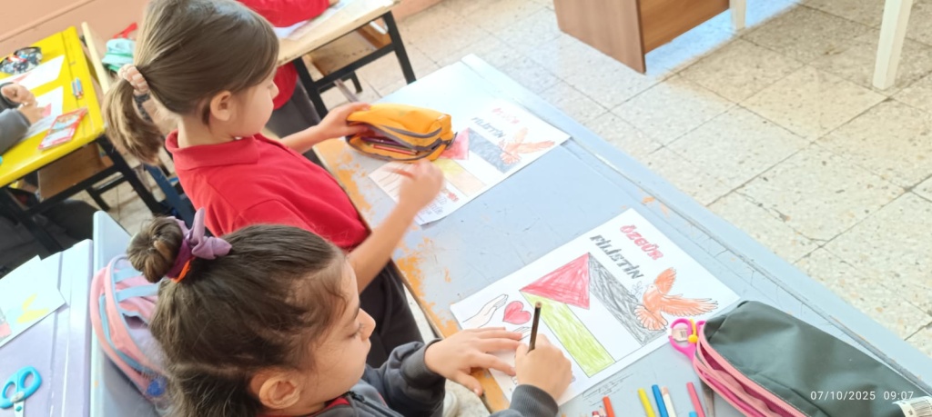 Milli Eğitim Bakanlığı’nın 7 Ekim tarihinde gerçekleştirilmesini planladığı “Filistin Farkındalık Etkinlikleri” kapsamında okulumuzda çeşitli etkinlikler düzenlendi. Öğretmenlerimizin rehberliğinde yürütülen çalışmalarla, öğrencilerimizin Filistin’de yaşanan insani krize karşı duyarlılıklarının artırılması hedeflendi.